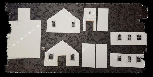 The wall sections have had window frames fitted. These are from Wells Railway kits.