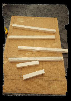 The wooden beams that support the building. Church now stuck to base, balsa floor in the main part of the building and through the base of the tower.